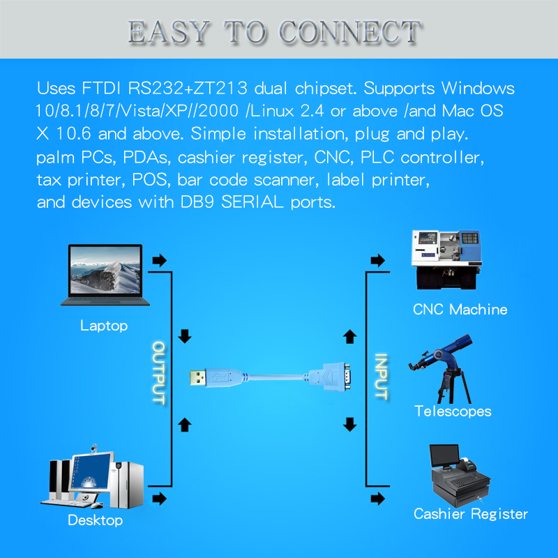 USB to Straight-Through RS232 DB9 Serial Adapter